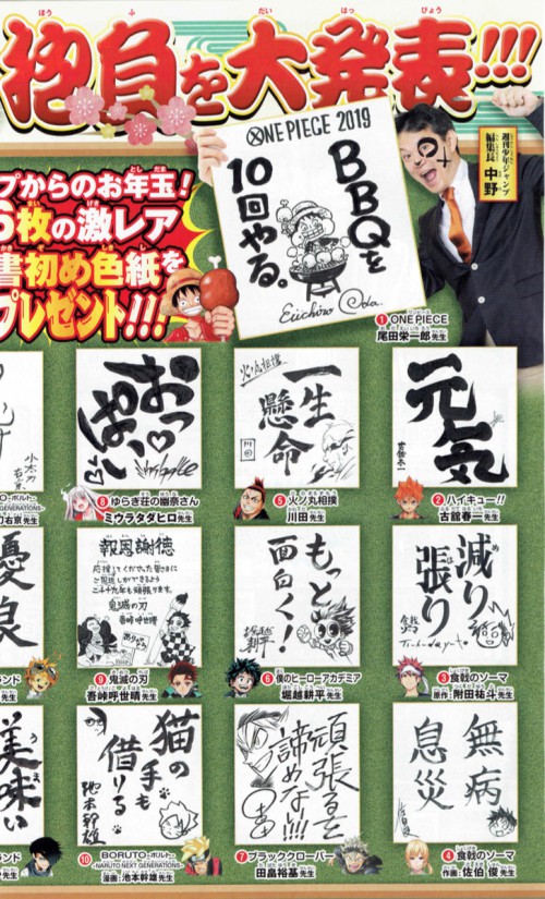 ジャンプ連載作家陣 書き初め色紙プレゼントキャンペーン Wj6 7合併号 Logpiece ワンピースブログ シャボンディ諸島より配信中